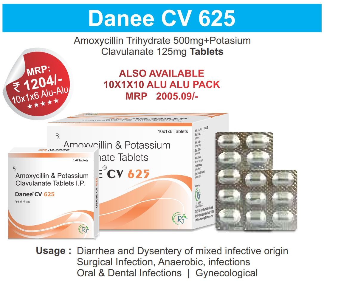 The Brand Name DANEE CV 625 LB ® Has Generic Salt :: Amoxicillin 500mg + Potassium Clavulanate 125mg + Lactic Acid