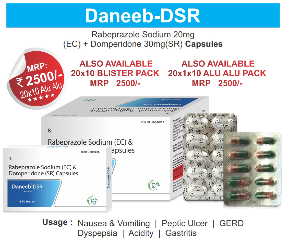 The Brand Name DANEEB-DSR ® Has Generic Salt :: Rabeprazole 20mg + Domperidone 30mg SR