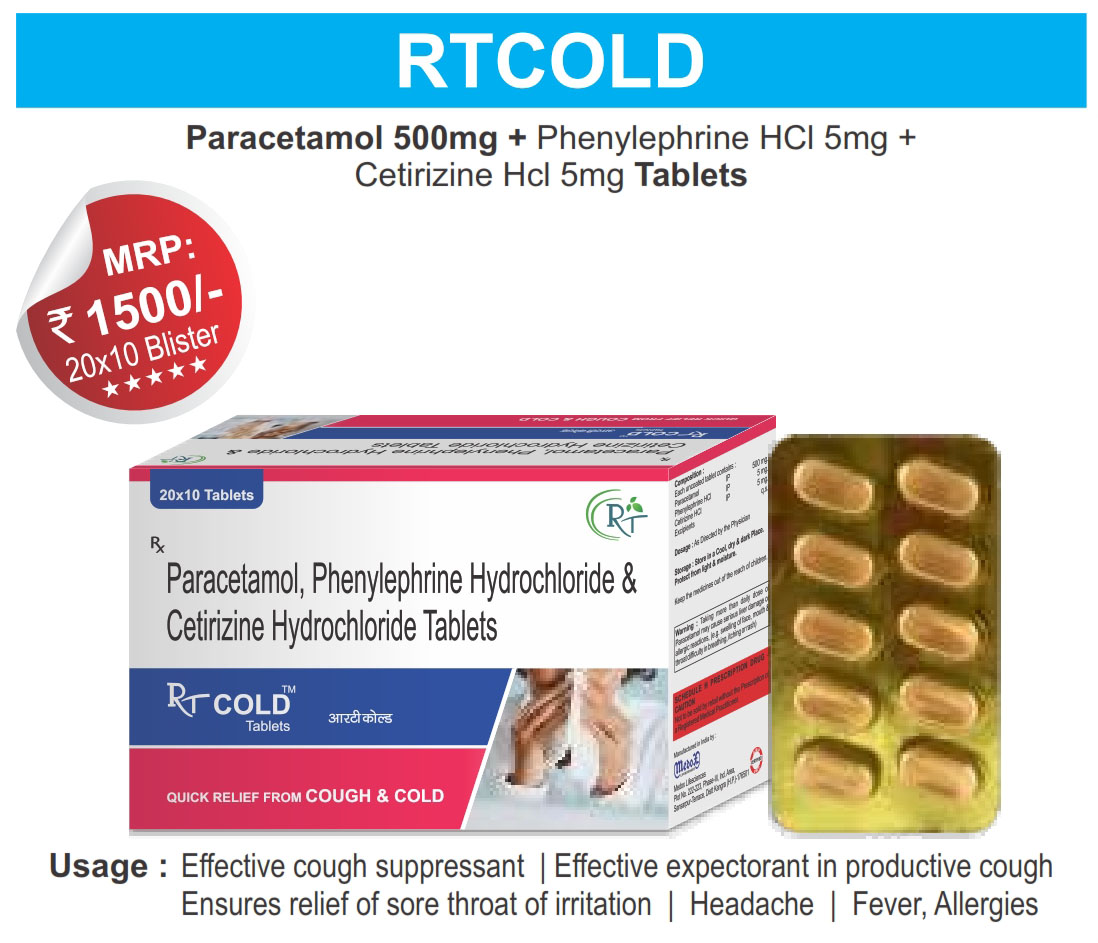 - 4 The Brand Name RT COLD ® Has Generic Salt :: Paracetamol 500mg + Pheylephrine HCL 5mg + Cetirizine HCL