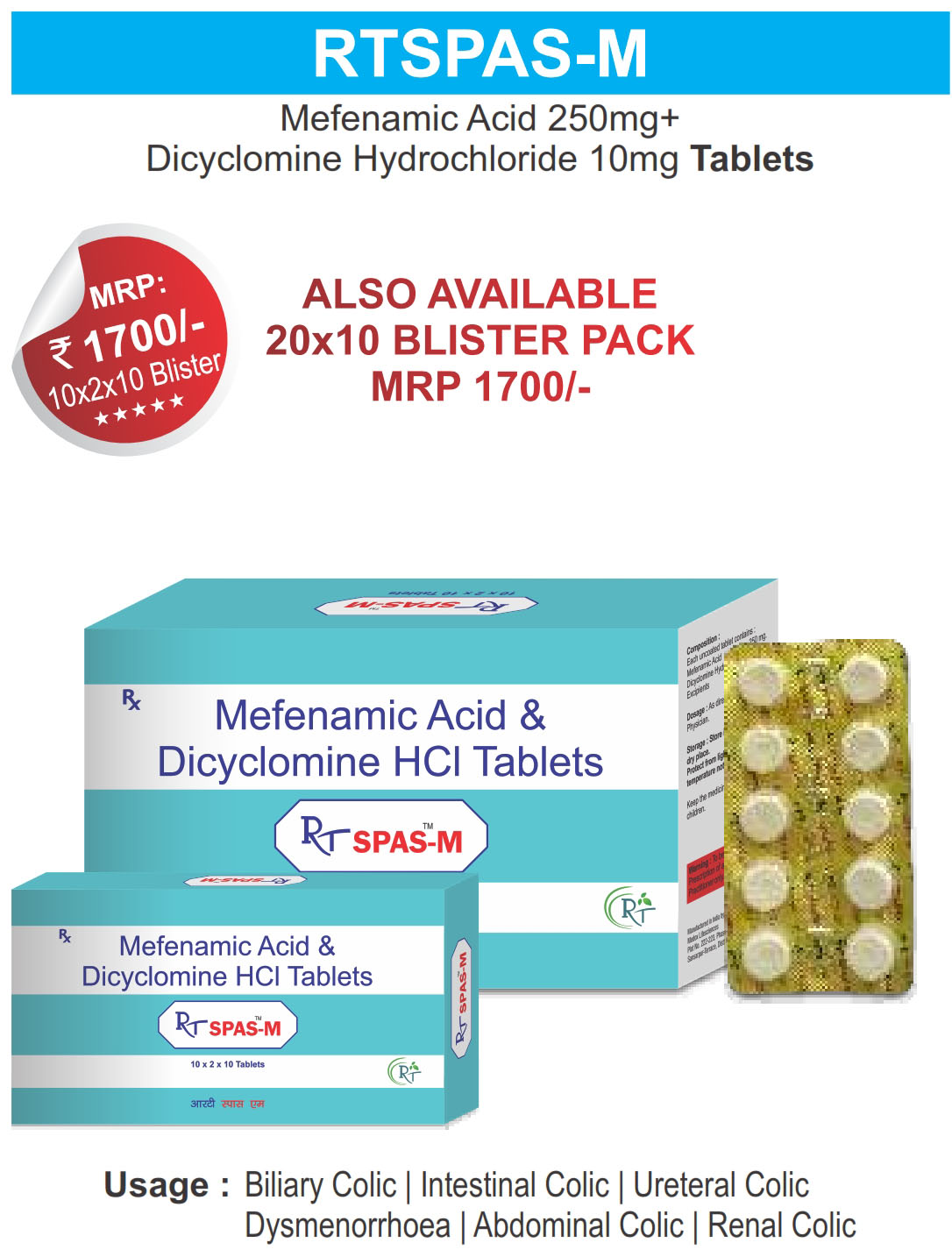 - 4 The Brand Name RT SPAS-M TAB ® Has Generic Salt :: Mefenamic Acid IP 250mg + Dicyclomine Hydrochloride IP 10mg