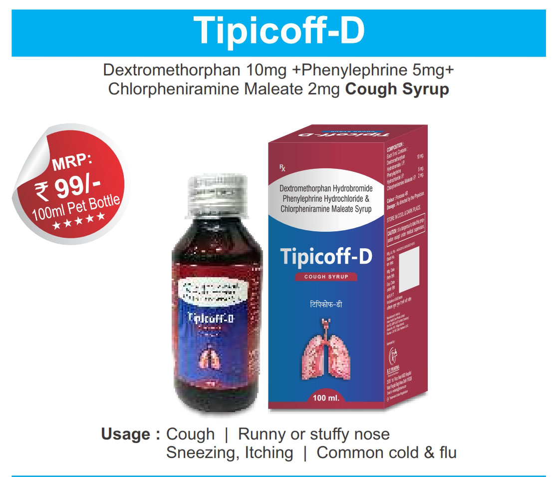 The Brand Name TIPICOFF-D ® Has Generic Salt :: Dextromethorphan HBr 10mg+CPM 2mg+Phenylephrine 5 mg