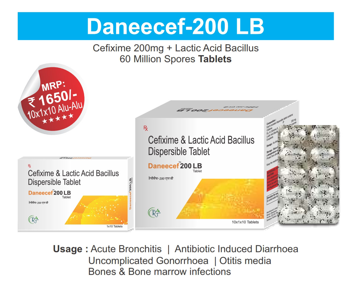 The Brand Name Has Generic Salt :: DANEECEF 200 LB :: 10x1X10 Is From Company :: Not Available Priced MRP Approx. :: Rs. 165 DANEECEF 200 LB :: 10x1X10 have is comes under Sub class of Main Class The Brand Name DANEECEF 200 LB ® Has Generic Salt :: Cefixime 200mg...
