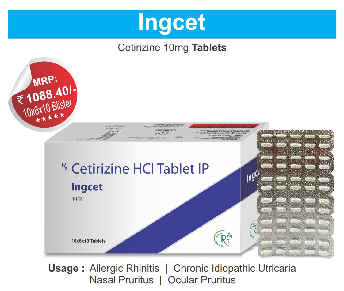 The Brand Name Has Generic Salt :: INGCET :: 60×10 Is From Company :: Not Available Priced MRP Approx. :: Rs. 18.14 INGCET :: 60×10 have is comes under Sub class of Main Class The Brand Name INGCET ® Has Generic Salt :: Cetirizine 10mg INGCET ® Packing :: 60×10 Main Medicine...
