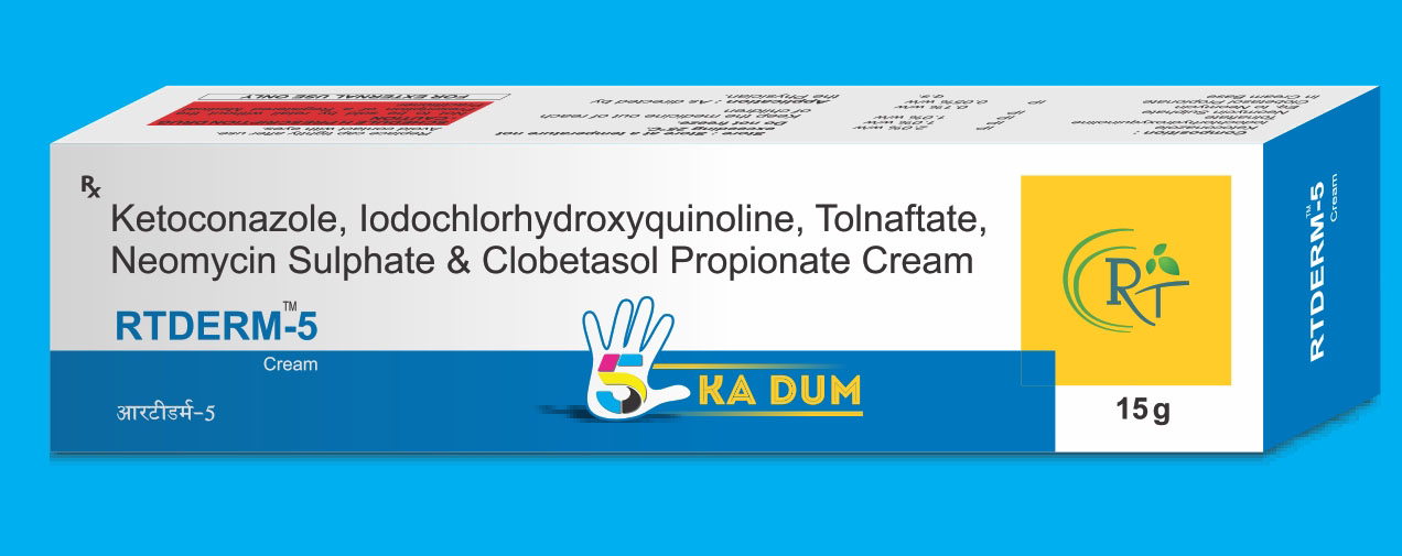 The Brand Name  Has Generic Salt :: RTDERM-5 :: 24x15g  Is From Company :: Not Available   Priced MRP Approx. :: Rs. 0 RTDERM-5 :: 24x15g have is comes under Sub class  of  Main Class The Brand Name RTDERM-5 ® Has Generic Salt :: Ketoconazole + Lodochlorhydroxyquinoline + Tolnaftate + RTDERM-5 ® ...