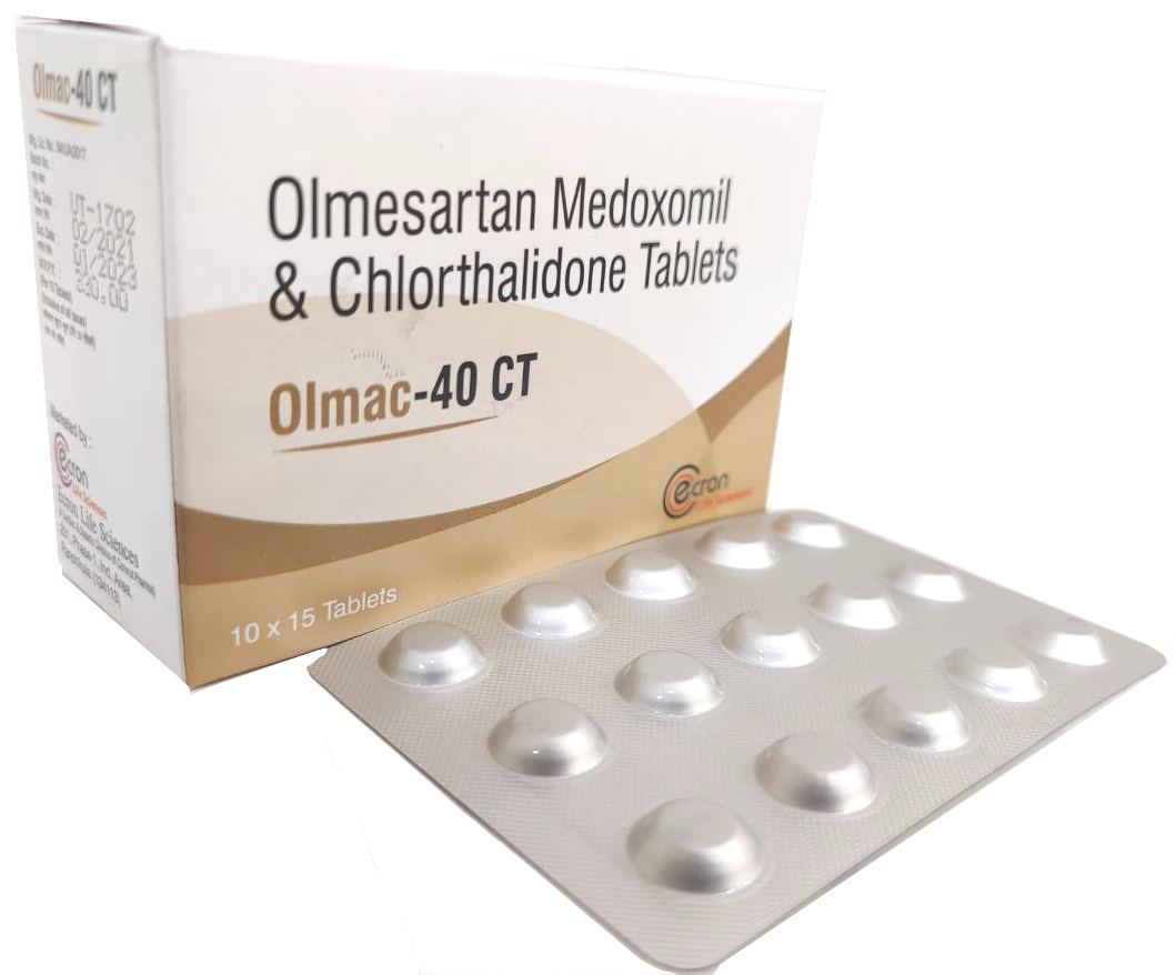 The Brand Name Has Generic Salt :: Olmesartan,Chlorthalidone OLMAC-40 CT :: 10 x 15 (Alu-Alu) Is From Company :: Not Available Priced MRP Approx. :: Rs. 330 OLMAC-40 CT :: 10 x 15 (Alu-Alu) have is comes under Sub class of Main Class The Brand Name OLMAC-40 CT ® Has Generic...