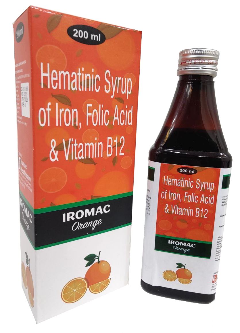 The Brand Name Has Generic Salt :: Ferric,Ammonium,Citrate,Folic,Acid,Methylcobalamin,Alcohol IROMAC ORANGE (Same as Dex-Orange) :: 200ml with Carton Is From Company :: Not Available Priced MRP Approx. :: Rs. 149 IROMAC ORANGE (Same as Dex-Orange) :: 200ml with Carton have is comes under Sub class of Main Class The Brand Name...