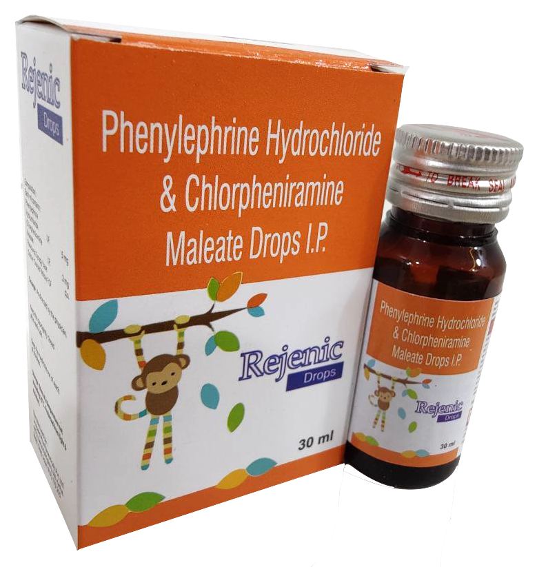The Brand Name Has Generic Salt :: Phenylephrine,Hydrochloride,Chlorpheniramine,Maleate REJENIC (Drops) :: 30ml with dropper Is From Company :: Not Available Priced MRP Approx. :: Rs. 65 REJENIC (Drops) :: 30ml with dropper have is comes under Sub class of Main Class The Brand Name REJENIC (Drops) ® Has Generic Salt :: Phenylephrine...