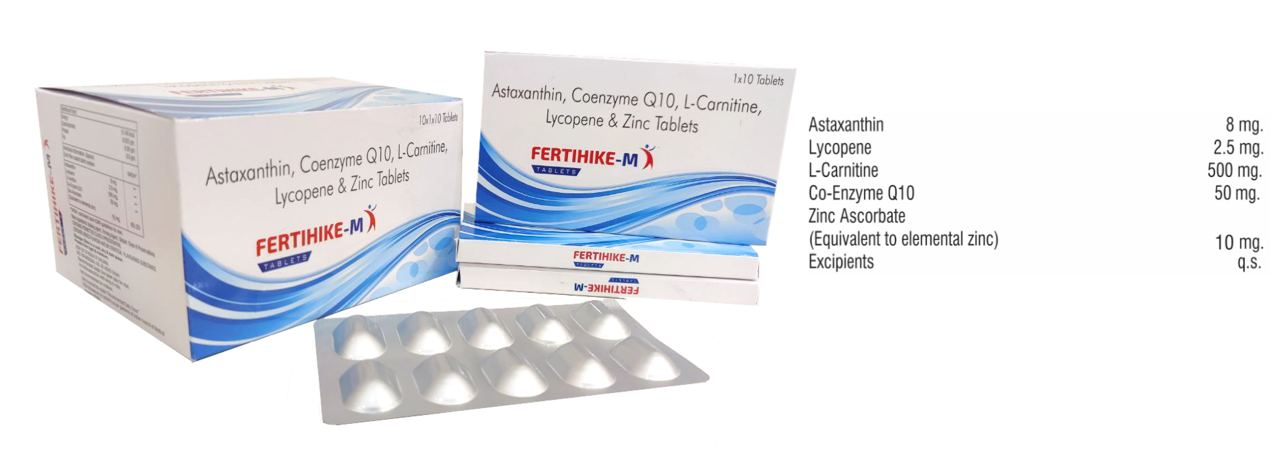 The Brand Name Has Generic Salt :: Coenzyme,L-Carnitine,Lycopene,Astaxanthin,Zinc,Male,Infertility FERTIHIKE-M :: 10 x 1 x 10 (Alu Alu) Is From Company :: Not Available Priced MRP Approx. :: Rs. 350 FERTIHIKE-M :: 10 x 1 x 10 (Alu Alu) have is comes under Sub class of Main Class The Brand Name...