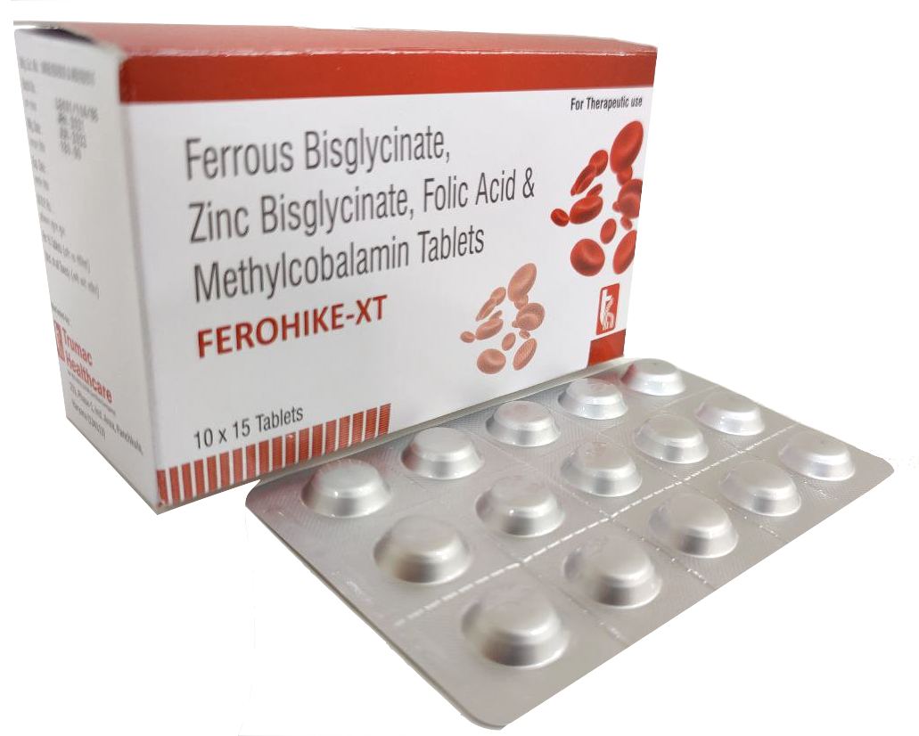 The Brand Name Has Generic Salt :: Ferrous,Bis-Glycinate,eq,Elemental,Iron,Zinc,Bis-Glycinate,eq,Elemental,Zinc,Folic,Acid,Methylcobalamin FEROHIKE-XT :: 10 x 15 (Alu Alu) Is From Company :: Not Available Priced MRP Approx. :: Rs. 180 FEROHIKE-XT :: 10 x 15 (Alu Alu) have is comes under Sub class of Main Class The Brand Name FEROHIKE-XT ® Has Generic Salt...