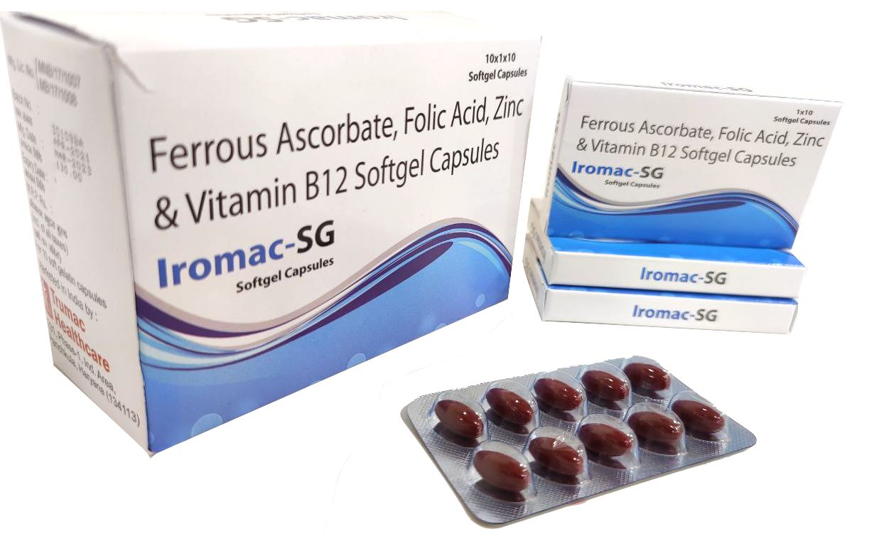 The Brand Name Has Generic Salt :: Ferrous,Ascorbate,Folic,Acid,Zinc,Sulphate,Soft,gel IROMAC-SG (Soft Gel) :: 10 x 1 x 10 (Blister) Is From Company :: Not Available Priced MRP Approx. :: Rs. 130 IROMAC-SG (Soft Gel) :: 10 x 1 x 10 (Blister) have is comes under Sub class of Main Class The...