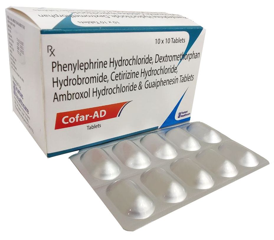The Brand Name Has Generic Salt :: Dextromethorphan,HBr,Cetirizine,HCl COFAR-AD :: 10 x 10 (Alu Alu) Is From Company :: Not Available Priced MRP Approx. :: Rs. 99 COFAR-AD :: 10 x 10 (Alu Alu) have is comes under Sub class of Main Class The Brand Name COFAR-AD ® Has Generic Salt...