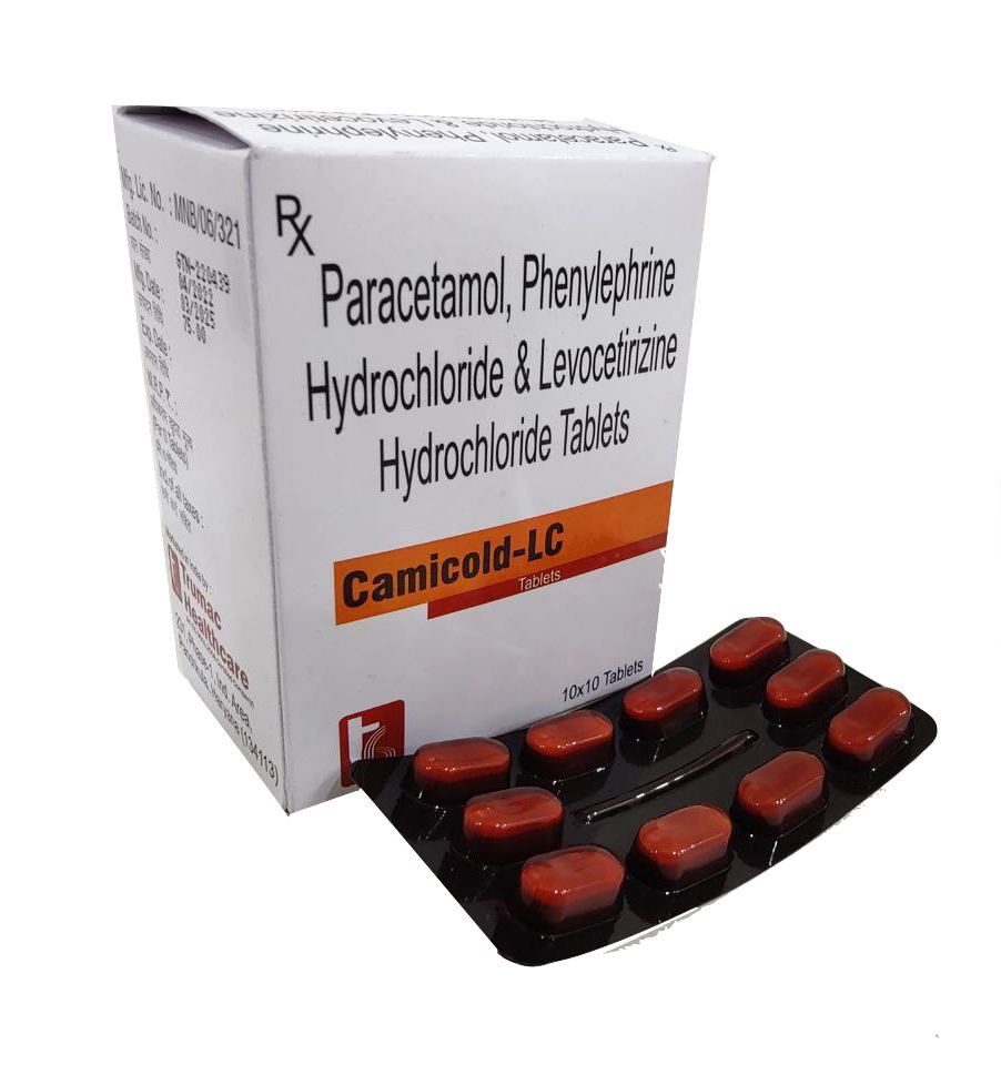 The Brand Name Has Generic Salt :: Paracetamol,Phenylephrine,Hydrochloride,Levocetirizine,Dihydrochloride CAMICOLD-LC :: 10 x 10 (Blister) Is From Company :: Not Available Priced MRP Approx. :: Rs. 75 CAMICOLD-LC :: 10 x 10 (Blister) have is comes under Sub class of Main Class The Brand Name CAMICOLD-LC ® Has Generic Salt :: Paracetamol 325...