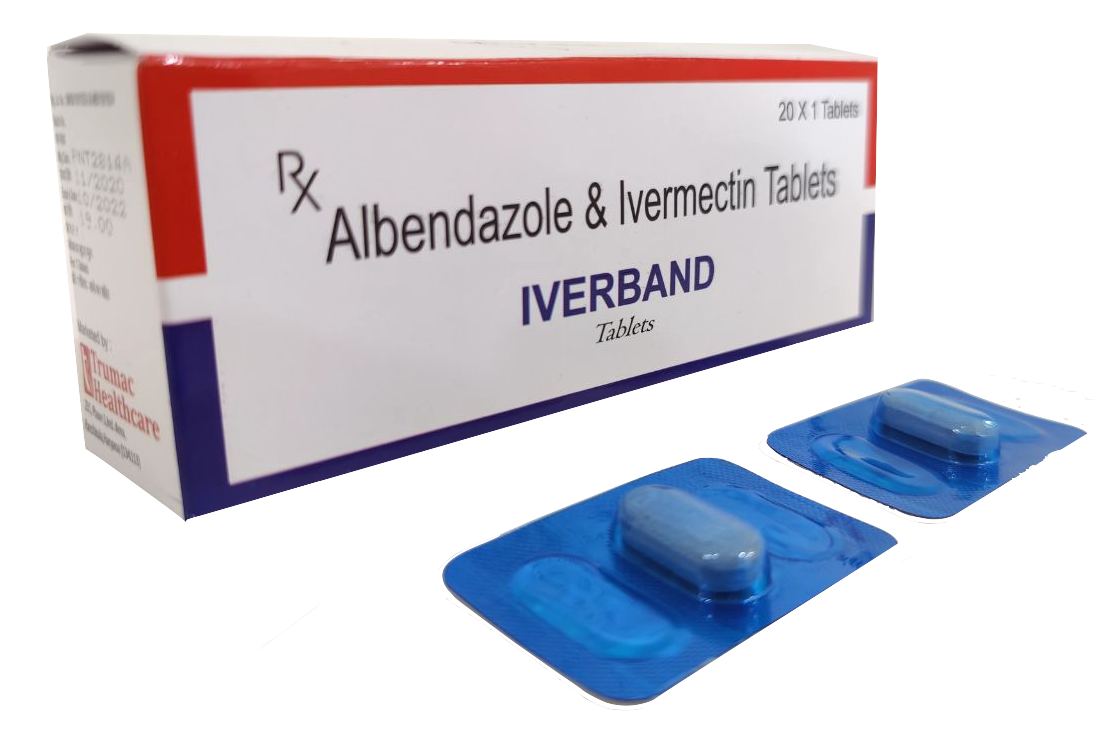 The Brand Name Has Generic Salt :: Albendazole,Ivermectin IVERBAND :: (20 x 1) Blister Is From Company :: Not Available Priced MRP Approx. :: Rs. 19 IVERBAND :: (20 x 1) Blister have is comes under Sub class of Main Class The Brand Name IVERBAND ® Has Generic Salt :: Albendazole 400mg...