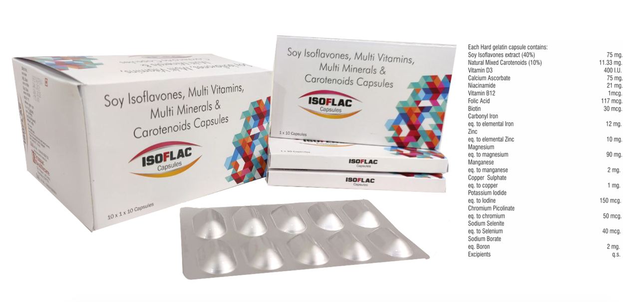 The Brand Name Has Generic Salt :: Soya,Isoflavones,Multivitamins,Multiminerals,Carotenoids ISOFLAC (Caps) :: 10 x 1 x 10 (Alu Alu) Is From Company :: Not Available Priced MRP Approx. :: Rs. 175 ISOFLAC (Caps) :: 10 x 1 x 10 (Alu Alu) have is comes under Sub class of Main Class The...
