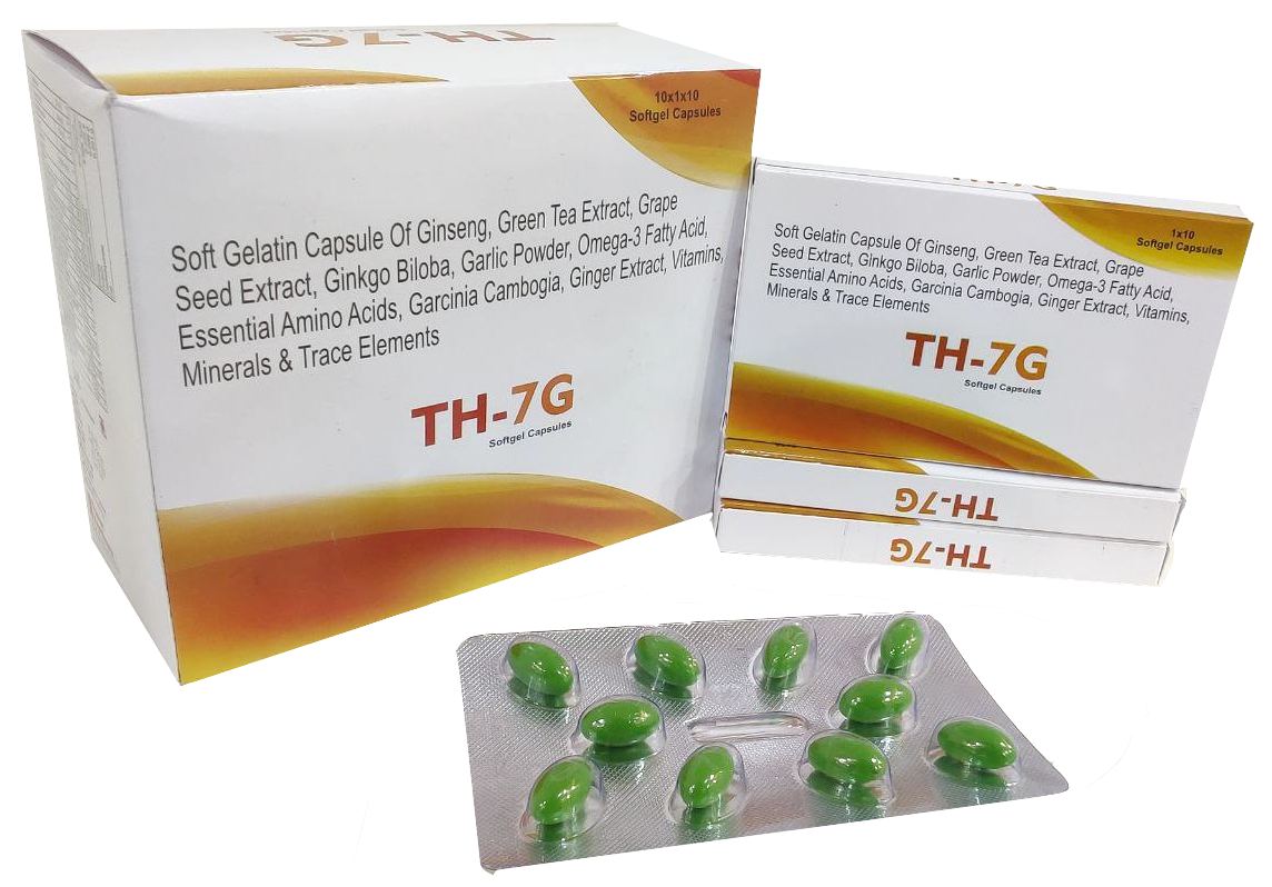 The Brand Name Has Generic Salt :: Green,Tea,Extract,Ginseng,Extract,Ginkgo,Biloba,Extract,Grape,Seed,Extract,Garlic,Oil,and,other,Multivitamins TH-7G (Soft Gel) :: 10 x 1 x 10 (Blister) Is From Company :: Not Available Priced MRP Approx. :: Rs. 210 TH-7G (Soft Gel) :: 10 x 1 x 10 (Blister) have is comes under Sub class of Main Class The...