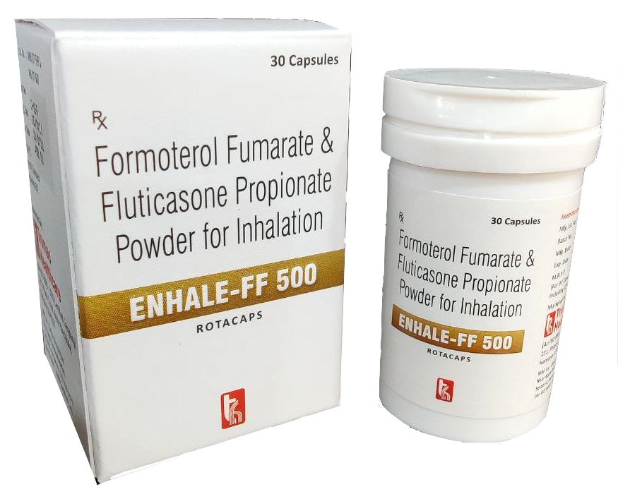The Brand Name Has Generic Salt :: Fluticasone,Propionate,Formoterol,Fumarate ENHALE-FF 500 (Rotacaps) :: Bottle (30 Caps) Is From Company :: Not Available Priced MRP Approx. :: Rs. 498 ENHALE-FF 500 (Rotacaps) :: Bottle (30 Caps) have is comes under Sub class of Main Class The Brand Name ENHALE-FF 500 (Rotacaps) ® Has...