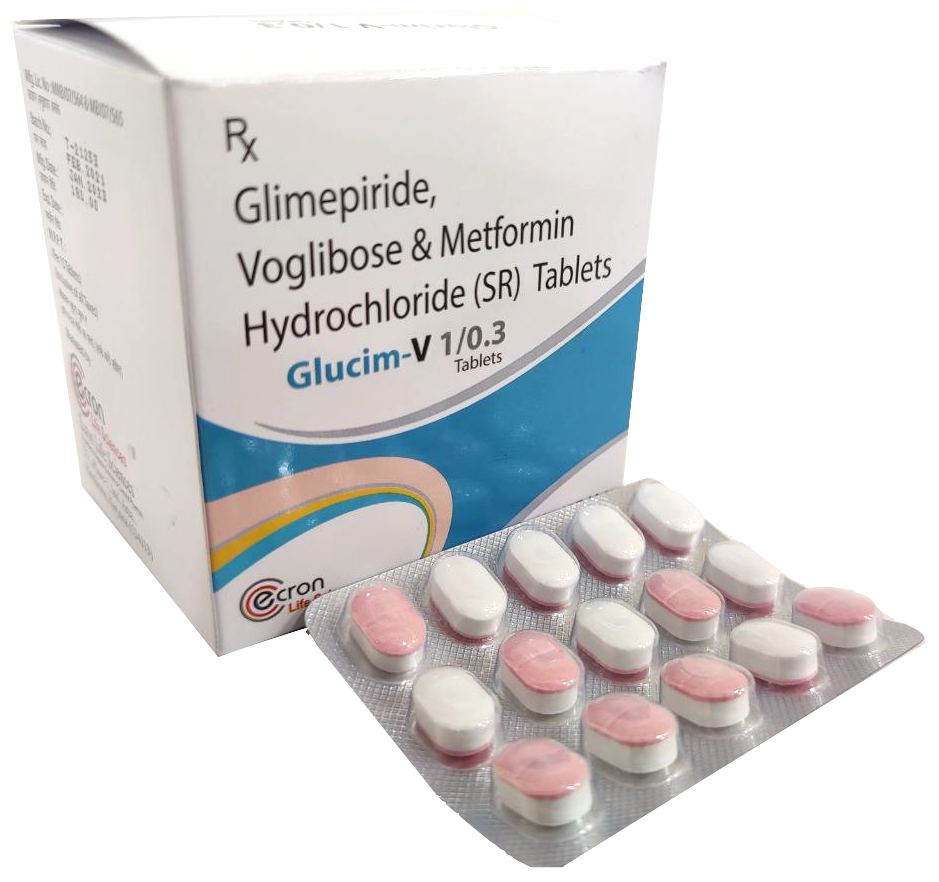 The Brand Name Has Generic Salt :: Glimepiride,Metformin,Voglibose,SR,Bilayered GLUCIM-V 1/0.3 (SR) :: 10 x 15 (Blister) Is From Company :: Not Available Priced MRP Approx. :: Rs. 180 GLUCIM-V 1/0.3 (SR) :: 10 x 15 (Blister) have is comes under Sub class of Main Class The Brand Name GLUCIM-V 1/0.3...