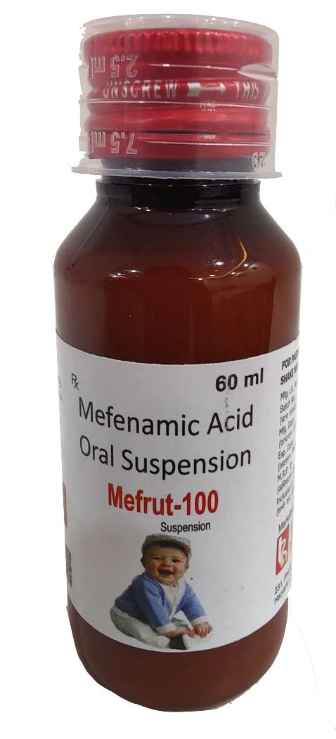 The Brand Name Has Generic Salt :: Mefenamic,Acid,Suspension MEFRUT-100 :: 60ml with Carton Is From Company :: Not Available Priced MRP Approx. :: Rs. 55 MEFRUT-100 :: 60ml with Carton have is comes under Sub class of Main Class The Brand Name MEFRUT-100 ® Has Generic Salt :: Mefenamic Acid 100mg Suspension...