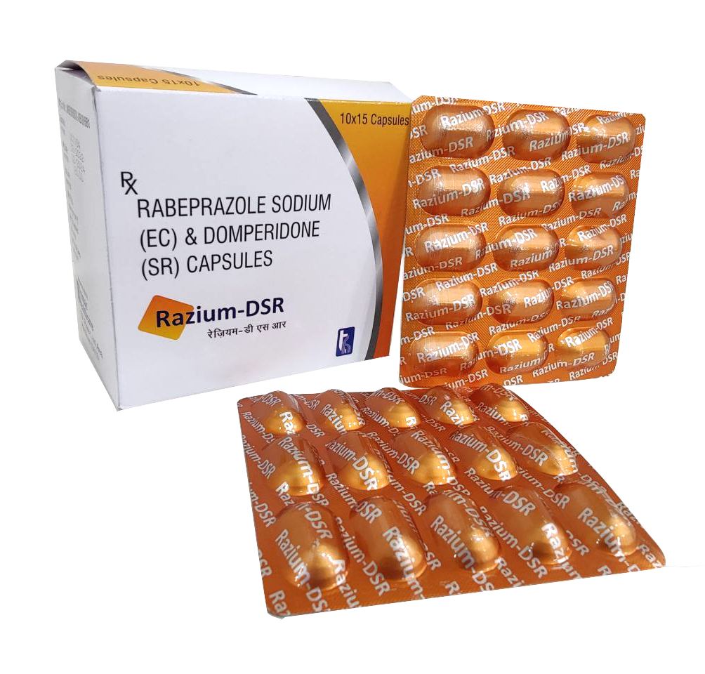 The Brand Name Has Generic Salt :: Rabeprazole,Domperidone,Sustained,Release RAZIUM-DSR (10 x 15) :: 10 x 15 (Alu-Alu) Is From Company :: Not Available Priced MRP Approx. :: Rs. 180 RAZIUM-DSR (10 x 15) :: 10 x 15 (Alu-Alu) have is comes under Sub class of Main Class The Brand Name...