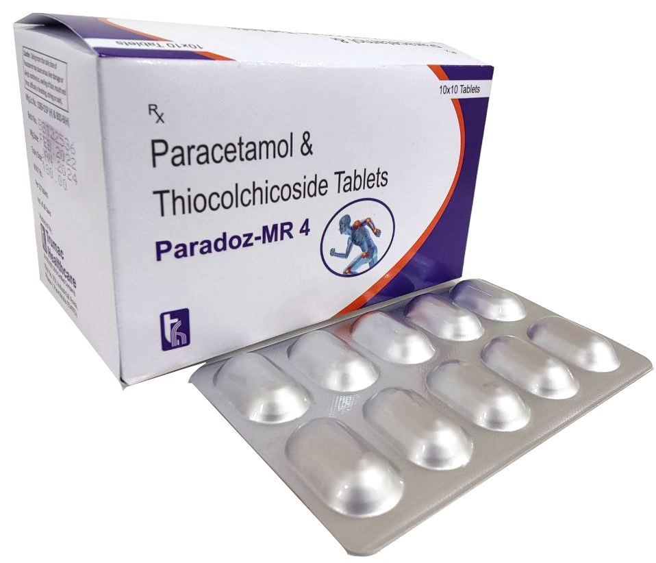 The Brand Name Has Generic Salt :: Thiocolchicodise,Paracetamol PARADOZ-MR 4 :: 10 x 10 (Alu-Alu) Is From Company :: Not Available Priced MRP Approx. :: Rs. 180 PARADOZ-MR 4 :: 10 x 10 (Alu-Alu) have is comes under Sub class of Main Class The Brand Name PARADOZ-MR 4 ® Has Generic...