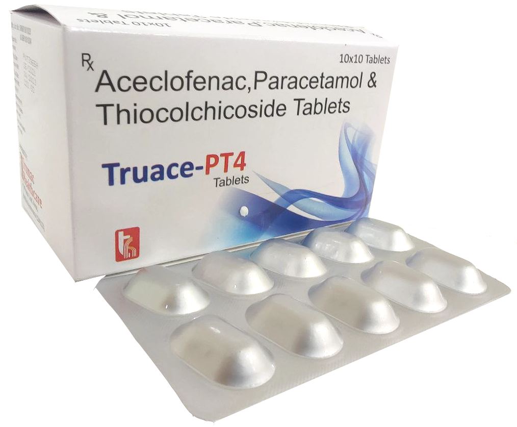 The Brand Name Has Generic Salt :: Aceclofenac,Thiocolchicodise,Paracetamol TRUACE-PT 4 :: 10 x 10 (Alu-Alu) Is From Company :: Not Available Priced MRP Approx. :: Rs. 220 TRUACE-PT 4 :: 10 x 10 (Alu-Alu) have is comes under Sub class of Main Class The Brand Name TRUACE-PT 4 ® Has Generic...